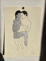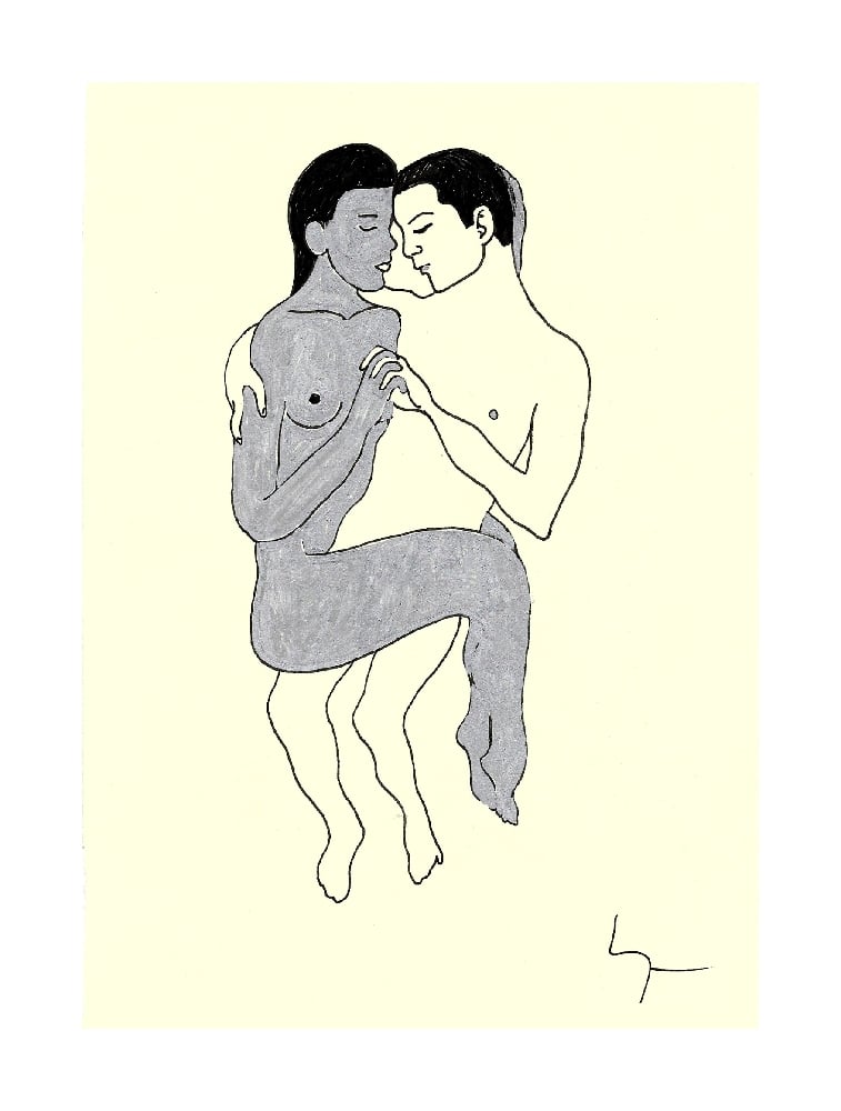 Dessin original intitulé 'Yin et Yang' représentant un homme et une femme s’enlaçant.
